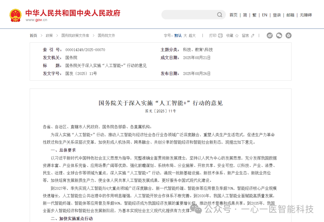 國務院近日印發《關于深入實施“人工智能+”行動的意見》(以下簡稱《意見》),明確將 “人工...